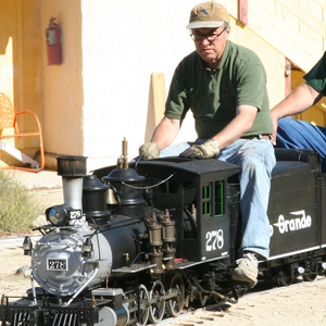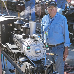 With his wife, they have a 2 ½” scale 7 ½” gauge railroad near Fresno which